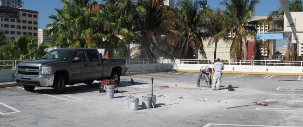 The Bayside Marketplace parking garage was built in 1984. It is a 4-level post-tensioned, cast-in-place concrete structure and the south side of structure has one less supported level.