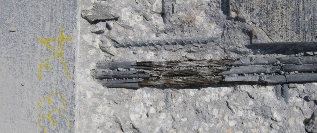 The roof level had closed due to cracking of floor slabs and underside concrete beams. Investigation determined post-tension cables inside concrete slab were experiencing corrosion due to lack of waterproofing.