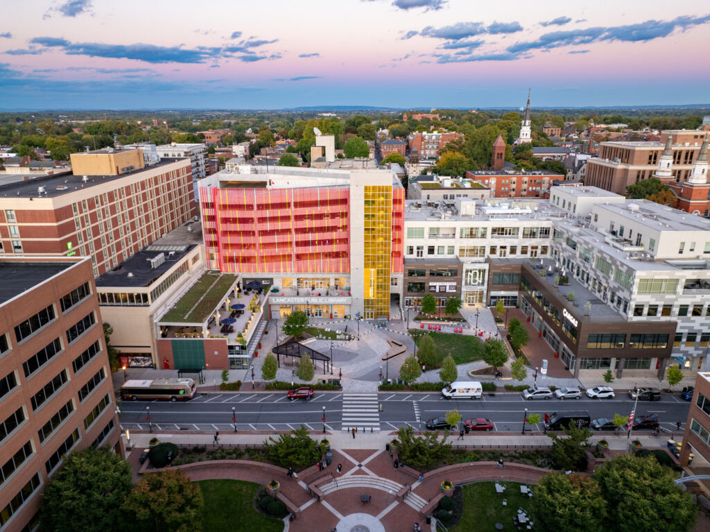 The Christian Street Parking Garage is part of an innovative urban redevelopment project in downtown Lancaster, intended to enhance community interactions and catalyze urban revitalization.