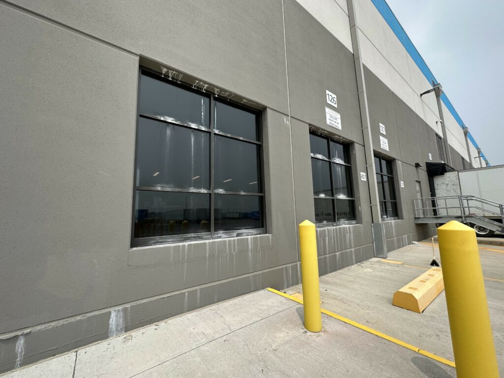 A new distribution warehouse facility exhibited leaking cracks in the façade. Walker was brought in to determine the cause of the leaks. The warehouse is built of tilt-up wall panel construction with the exterior façade concrete cast in one concrete placement with the structural concrete cast against it in a second placement. The tilt-up panels vary in height with the maximum being fifty feet. Leaking was observed at cold joints between the two concrete placements at truck dock locations. The Walker team performed a condition assessment which included reviewing the façade to determine cracking locations, condition of sealants, and overall condition of roof membrane and terminations. To observe the leaking, Walker performed water testing at isolated locations of the façade and found evidence of leaks at existing cracks. The water testing provided our client with an understanding that water was likely getting in at façade cracks and some sealant locations and migrating within the panel through the cold joint and out at lower cracks in the panels. Walker provided conceptual repair recommendations and also, recommended performing a mock up and further water testing to confirm repair procedures.