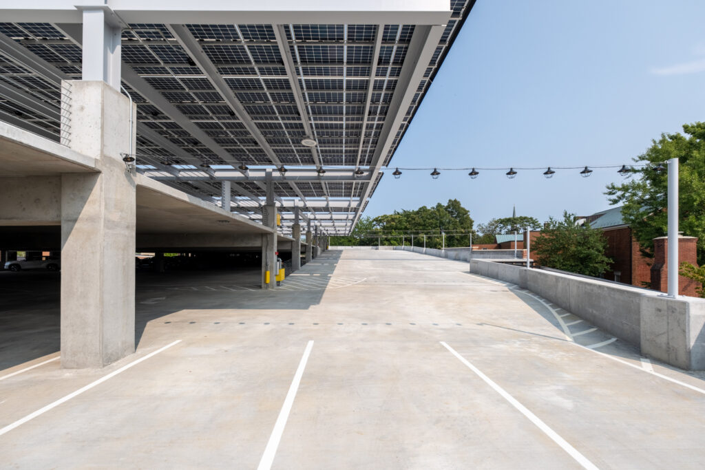 Walker Consultants served as prime designer and structural engineer of record. The challenge was creating a cost-effective structure to meet historic district height restrictions and guidelines while having an architectural treatment that would integrate with the Annapolis style. Zoning allowed a tight envelope, which left a volumetric box with cleaner lines than the previous garage, giving some flexibility in creating an architectural façade. The goal was to create a façade to invite pedestrian interaction and allow the ground floor to function as a farmer’s market for the city. The concept also helped to satisfy the openness requirements of the building code for ventilation and fire protection.