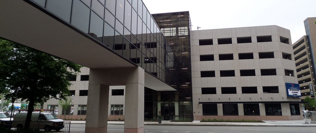 The OneAmerica Parking Garage provides additional parking to downtown Indianapolis. This garage will allow for urban development to replace the existing surface lots. The employee parkers who use this facility will embrace the flat floor and express ramp experience. The garage will also support special event parking on nights and weekends.