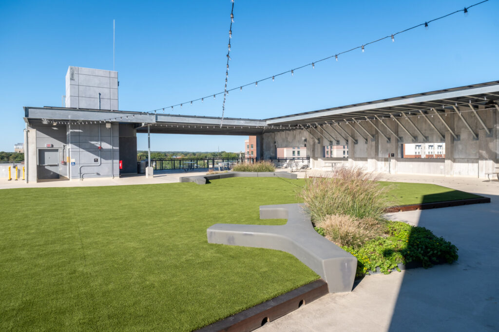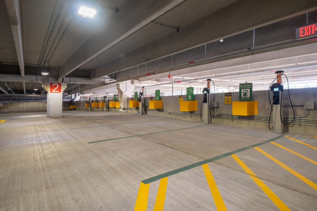 Amenities include EV charging stations, bicycle storage, a roof top pocket park and a pedestrian bridge that transitions from the garage to the Springfield Plaza.