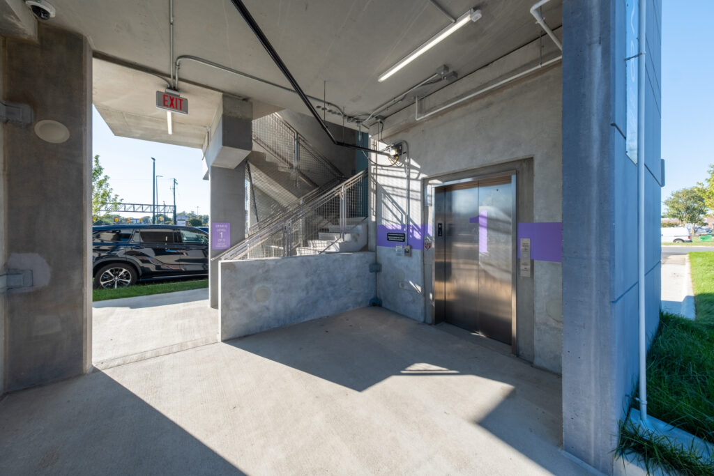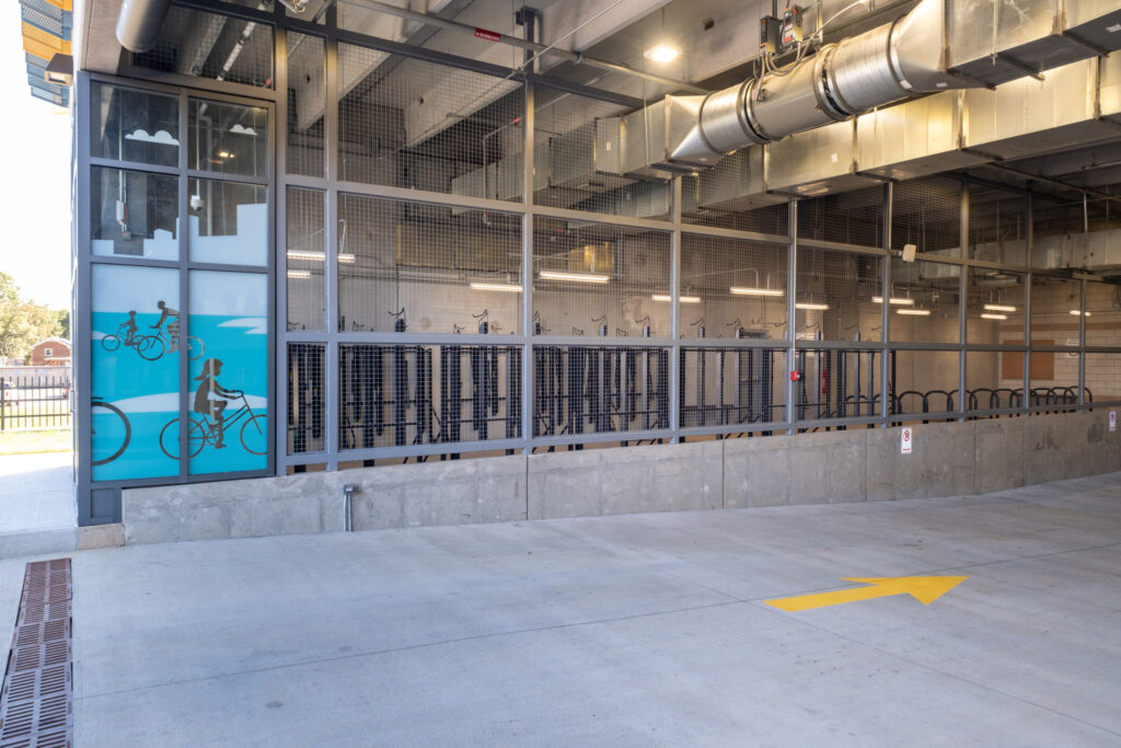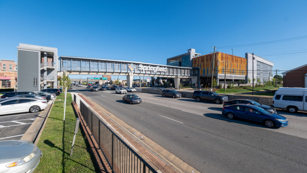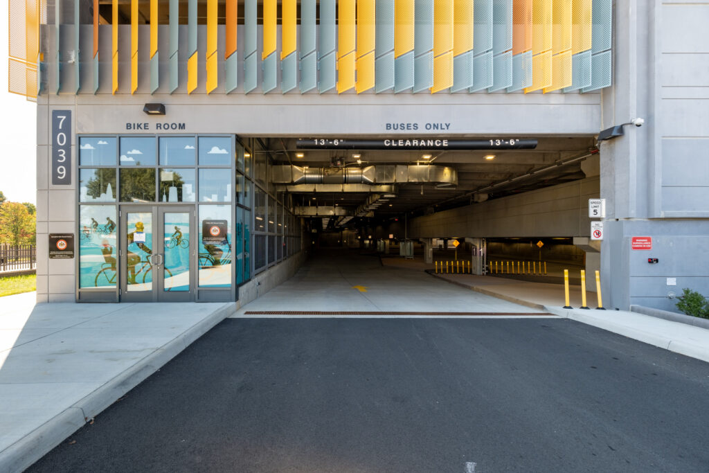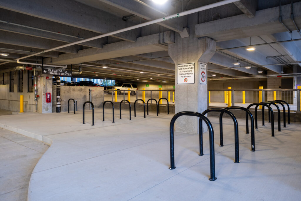 The new six-level, 1,050-space, precast concrete garage encourages use of the Fairfax County transit Center and the safety of cyclists and pedestrians, while also supporting carpooling and commuting opportunities of the Springfield residents and commuters.