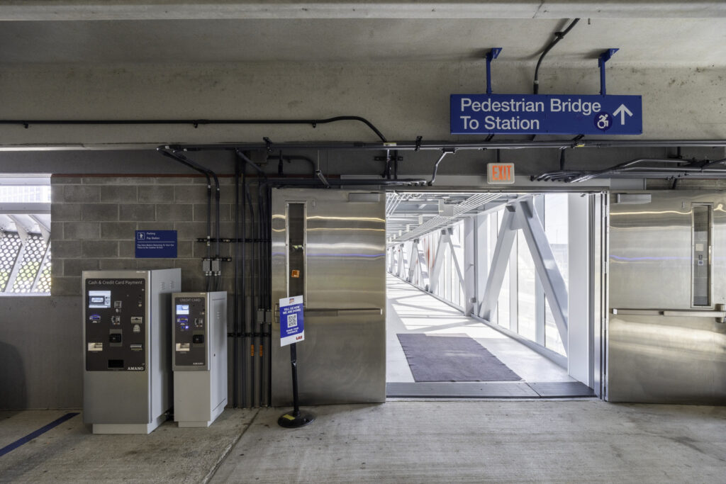 The facility supports modern urban needs with extensive bike provisions and a rideshare drop-off area. It also includes an automated parking guidance system, enhanced security, and customer service features.