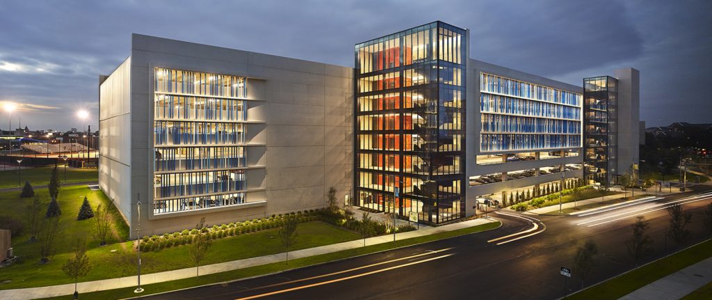 The new Parking Garage and Public Safety Unit for the University of Massachusetts Boston serves as a gateway to the campus. In partnership with Fennick McCredie (Architect), Suffolk Construction (Contractor) and Skanska (Project Manager), Walker Consultants provided Functional Design, Structural Engineering, Sustainability Consulting and PARCS design for a 500,000 SF facility that serves the Department of Public Safety and the Athletics Department. The facility provides 900 parking spaces.