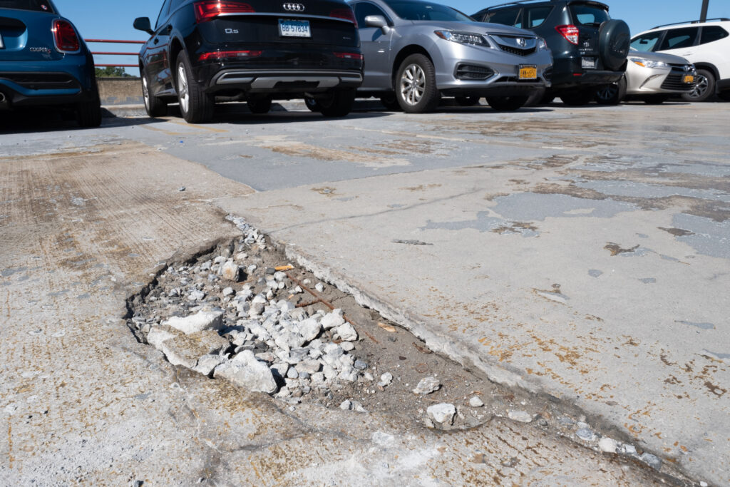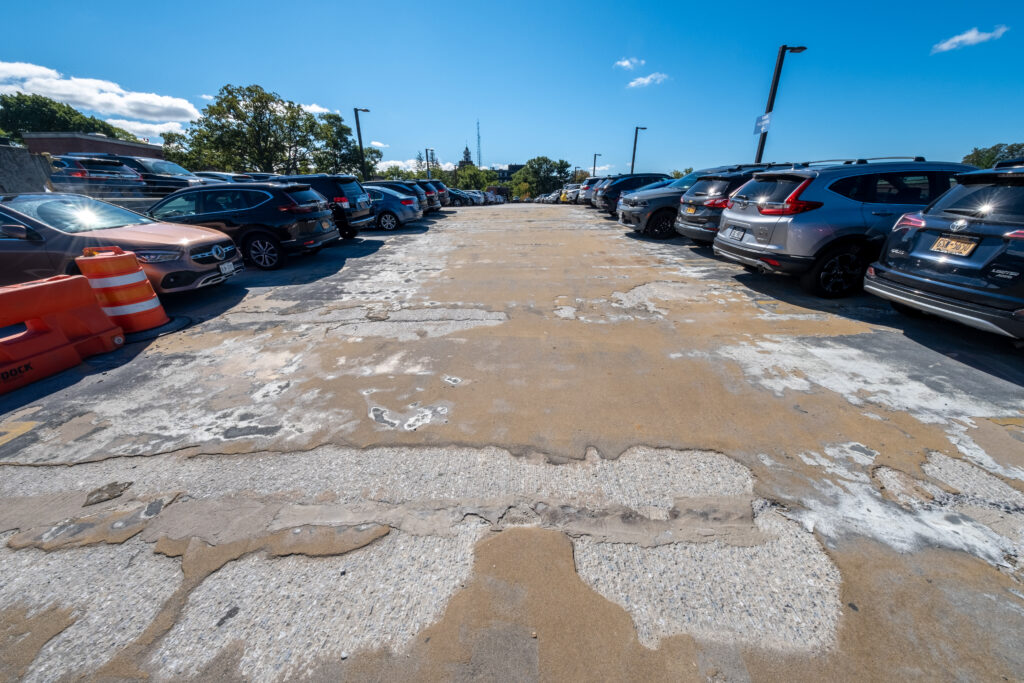 Deterioration at the Westchester Medical Center parking structure, originally constructed 1998, was reported by the Center. Walker was retained to provide a condition assessment of the garage. Notable findings included concrete scaling along slabs, delamination due to rusting of embedded reinforcement and connections and freeze-thaw damage, rusted metal connections, spalled/cracked concrete curbs, and spalls at drains and along construction and expansion joints. Following the delivery of the report, Walker designed repairs, which included replacement of sections of concrete topping, full depth slab replacement, concrete surface repairs, and replacement of waterproofing elements. We also assisted the Center with contractor bidding services and provided construction administration to verify that work was performed per repair documents. Our multi-phase program enhanced financial planning for the Center and maximized available budgets for repairs and maintenance, ultimately reducing their overall costs for repair.