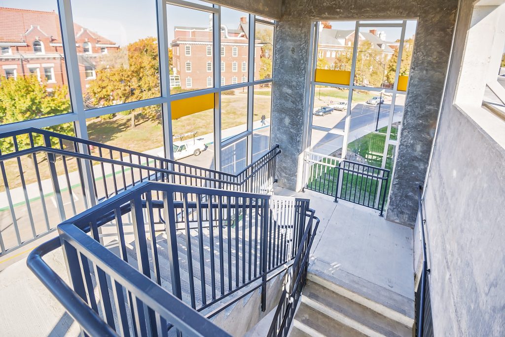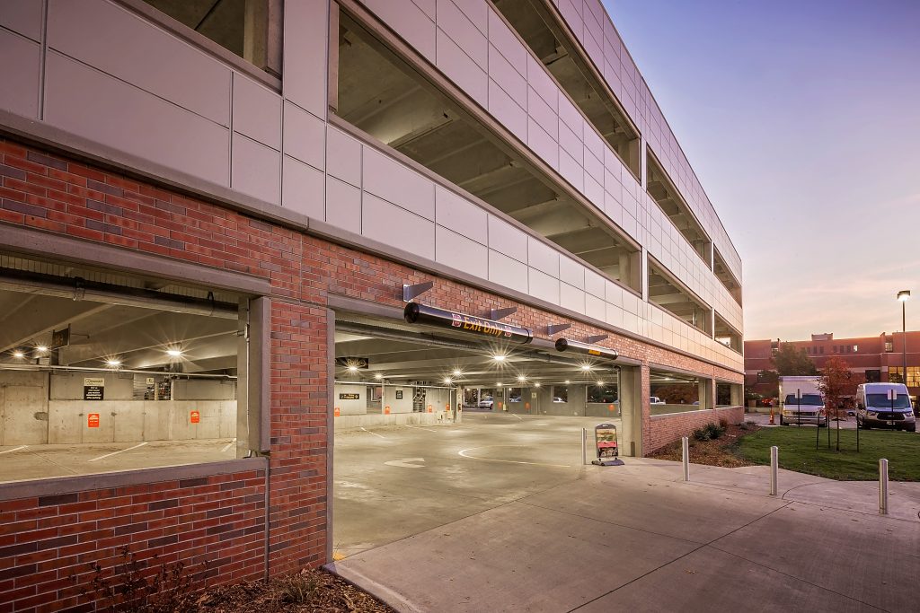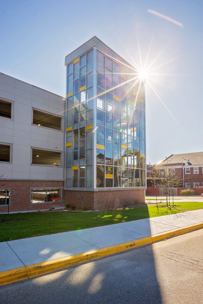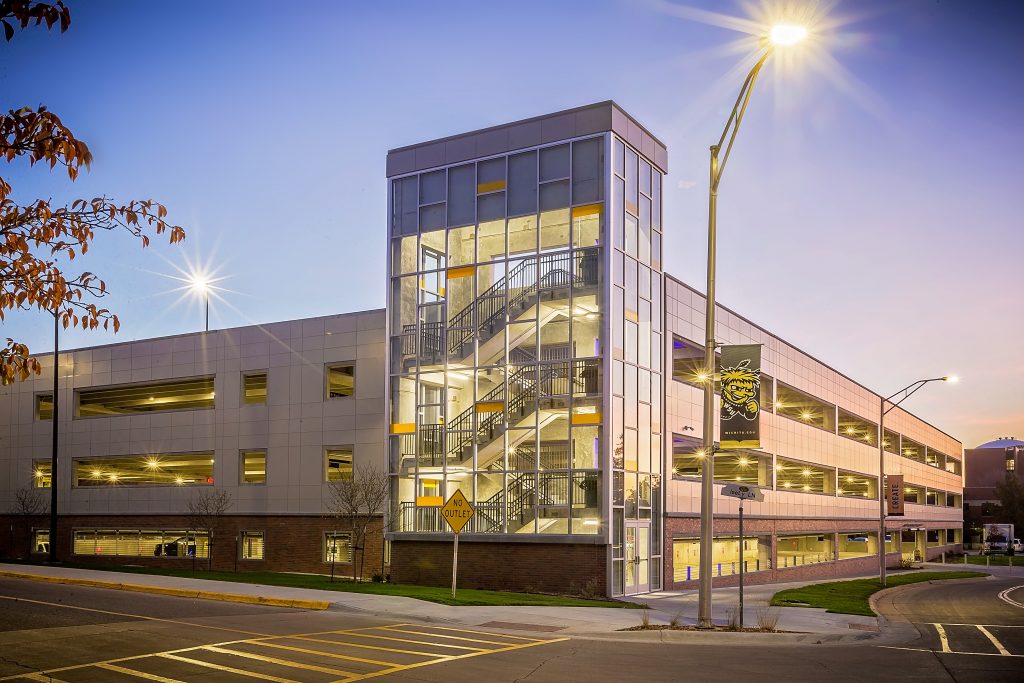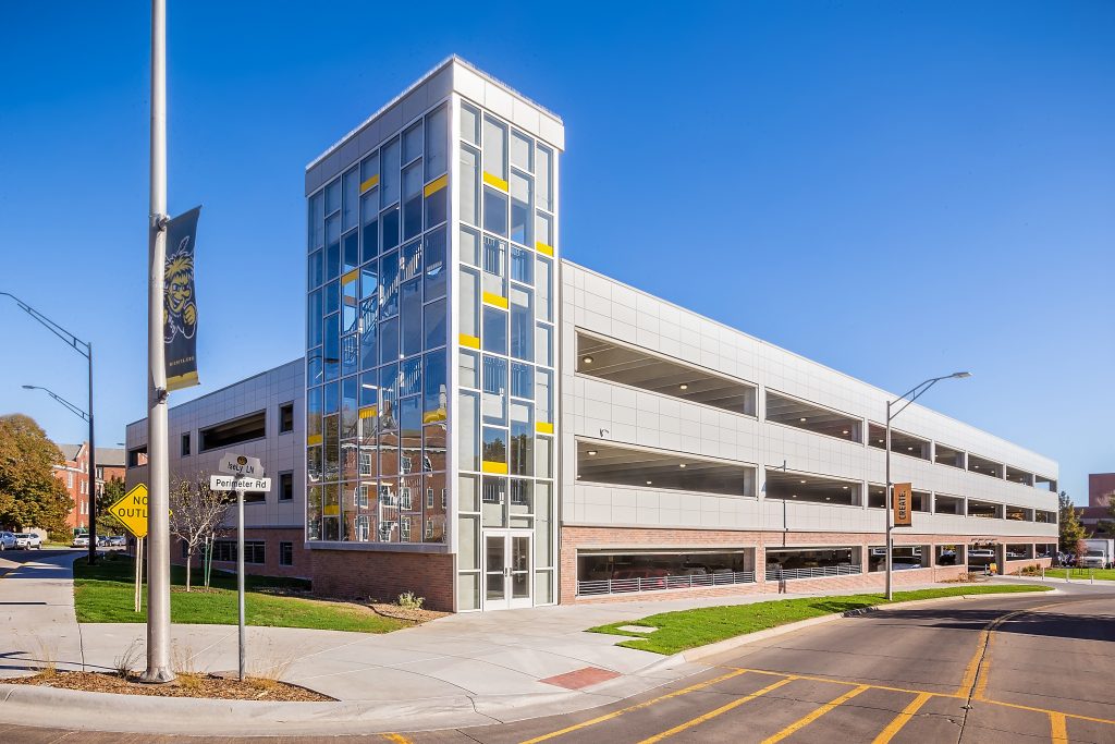 Centrally located on the Wichita State University campus, this pay-to-park garage is built on an existing lot previously used by faculty and staff. This multi-level garage has 450 spaces for faculty, students and visitors and includes reserved, disabled (ADA) and motorcycle parking. The new garage also features LPR (License Plate Recognition) technology. Designed and constructed in association with GLMV Architecture and Dondlinger Construction.