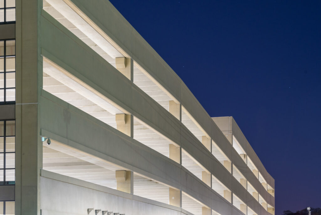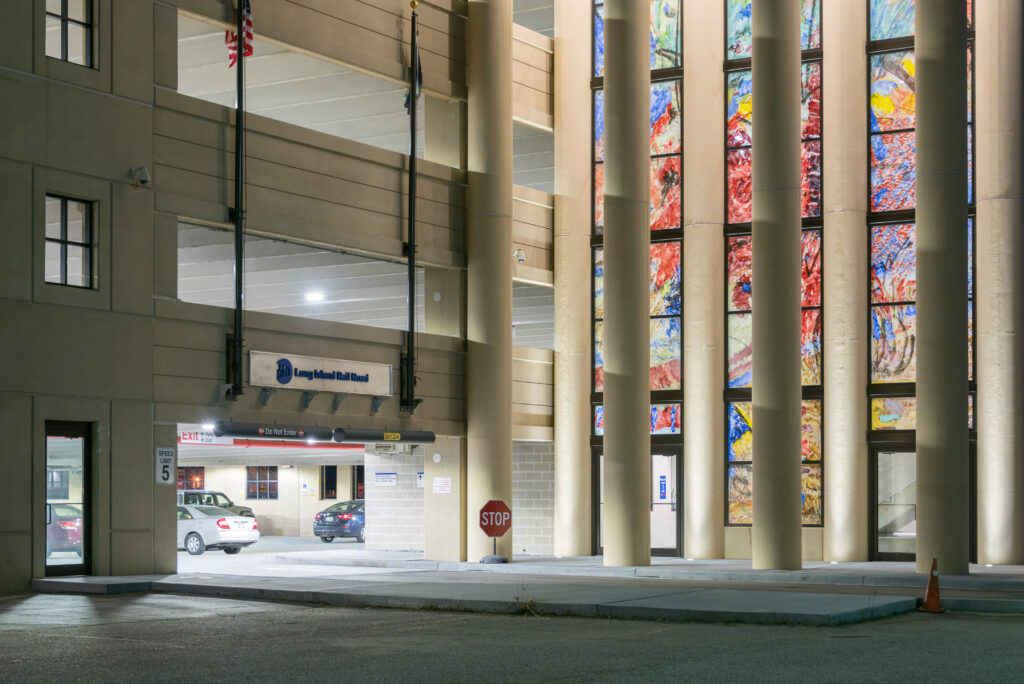 As part of their downtown revitalization program, the Town of Babylon retained Walker to design a freestanding garage that would serve as a central transportation hub. The 919-space, 5-level Wyandanch Intermodal Facility provides access to the Long Island Railroad (LIRR), Suffolk County Bus Service, taxis, and automobiles. It also provides parking for commuters and serves the residents and shoppers in the Wyandanch Rising mixed-use, Transportation Oriented Development (TOD) community. The project’s most significant complexity was designing an aesthetically pleasing facade that would be compatible with future residential construction abutting the north and west facades. The facility also needed to be designed for future expansion. Walker designed the facility in accordance with the client’s current and short-term (1- to 5-year) needs while carefully considering its future expansion. Our design accounted for future shared foundations, removable spandrels, planning for future traffic flow with the expanded garage, and accommodating shear footing. Sustainable design elements include a storm water retention basin system that replenishes natural aquifers and reduces runoff to adjacent storm sewers, energy-efficient LED light fixtures provide high levels of illumination but require minimum maintenance. Additionally, the concrete mix contains recycled materials. The structure features an independent precast stair elevator tower with unique stained-glass panels that creates a unique public space. The entry/exit has a single-arm gated system, and multi-meter spaces can be found in the garage.